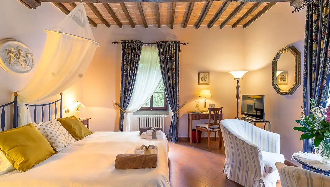In Tuscany, in the lush green heart of Chianti stands Villa La Cappella, a historic residence accessible by the main road, which also allows you to easily reach historic cities of art such as Florence, Siena, San Gimignano, Volterra, Lucca and Pisa, as well as the Tyrrhenian coast. Villa La Cappella is the ideal place to immerse yourself in relaxation and nature, allowing yourself to be engulfed by Tuscany. Your retreat will include spending quality time learning about the history, nature, art and food as well as wine of this wonderful region.